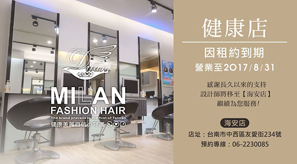 台南在地第一連鎖品牌 MILAN HAIR SALON 免付費專線:0800-601-490
